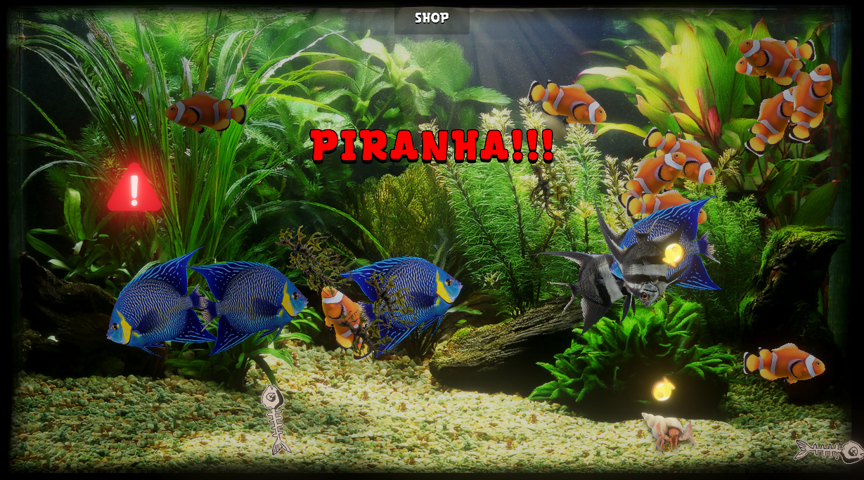 An insaniquarium inspired game where you have to feed and control an aquarium. Buy different upgrades to make money faster!
